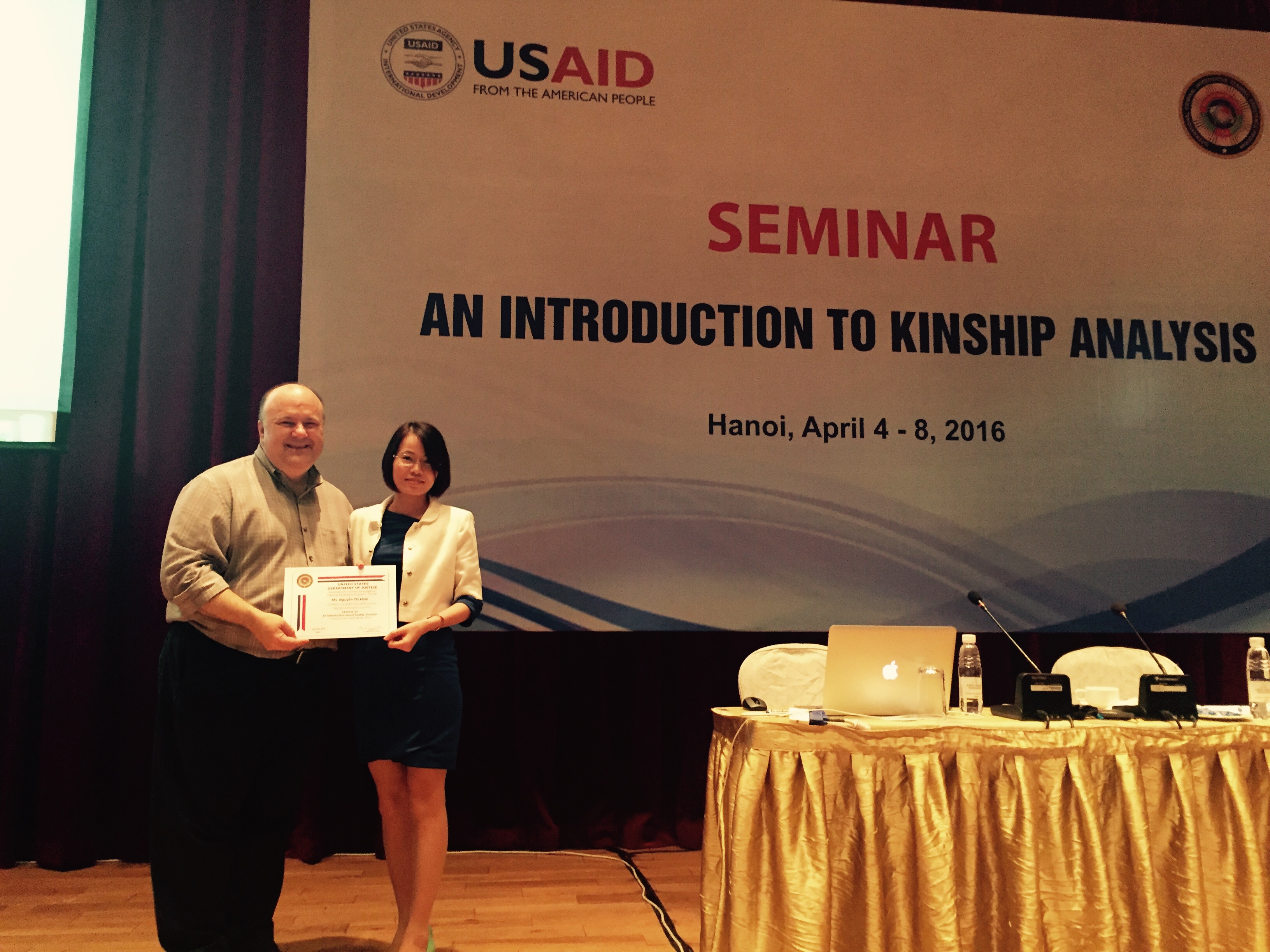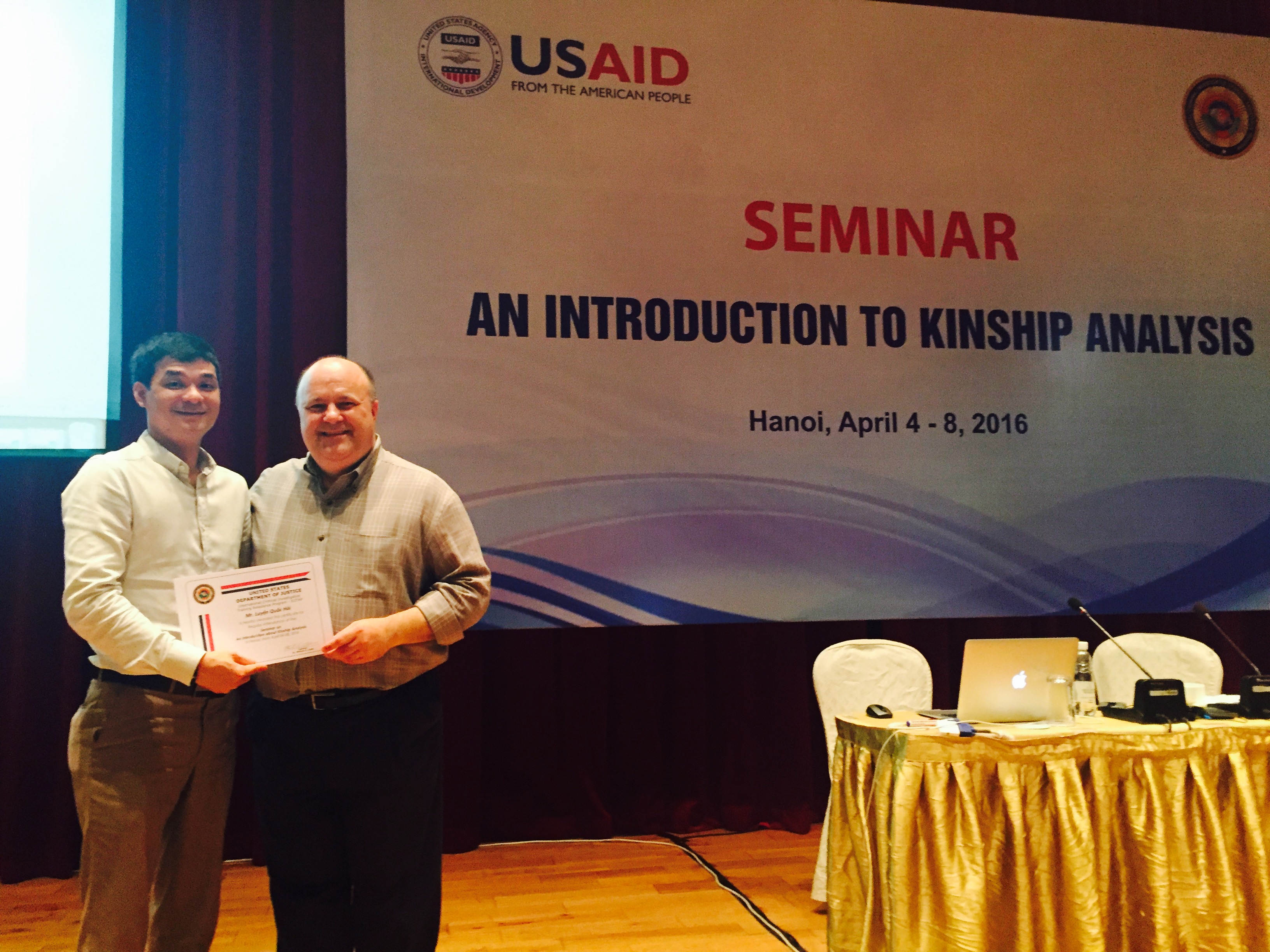 14:26:3513/04/2016Hội thảo “Giới thiệu về phân tích huyết thống” diễn ra từ ngày 4/4/2016 – 8/4/2016 được USAID Việt Nam phối hợp với Viện công nghệ và chứng nhận quốc gia Hoa Kỳ (NIST) tổ chức và đào tạo do Tiến Sĩ Michael D. Coble – chuyên gia hàng đầu về di truyền học tại Mỹ làm diễn giả. Bionet Việt Nam vinh dự được mời tham dự hội thảo này.