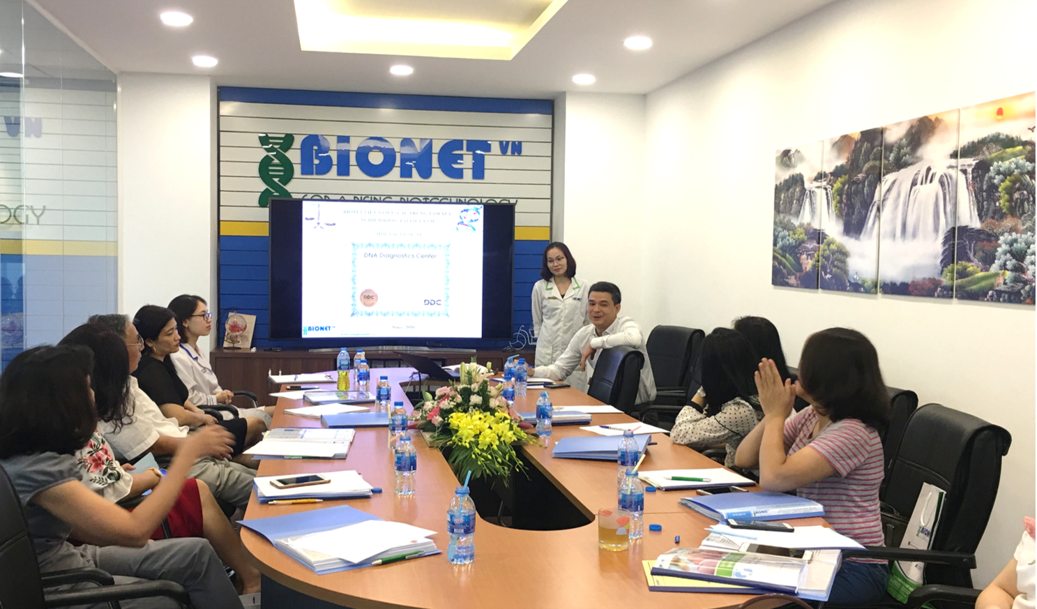 Cũng trong buổi tập huấn, Thạc sĩ Nguyễn Thị Hoài – Phó giám đốc Trung tâm tư vấn di truyền và ung thư, Trưởng phòng xét nghiệm ADN, đã có bài báo cáo về các dịch vụ xét nghiệm chất lượng cao đang được Bionet triển khai mạnh mẽ như: Xét nghiệm Sàng lọc trước sinh không xâm lấn – NIPT, xét nghiệm ADN huyết thống cha con trước sinh không xâm lấn, xét nghiệm ADN huyết thống sau sinh, xét nghiệm bệnh di truyền, ... Bài báo cáo và trao đổi đã nhận được sự quan tâm và thảo luận sôi nổi từ phía các cán bộ tham dự lớp tập huấn.